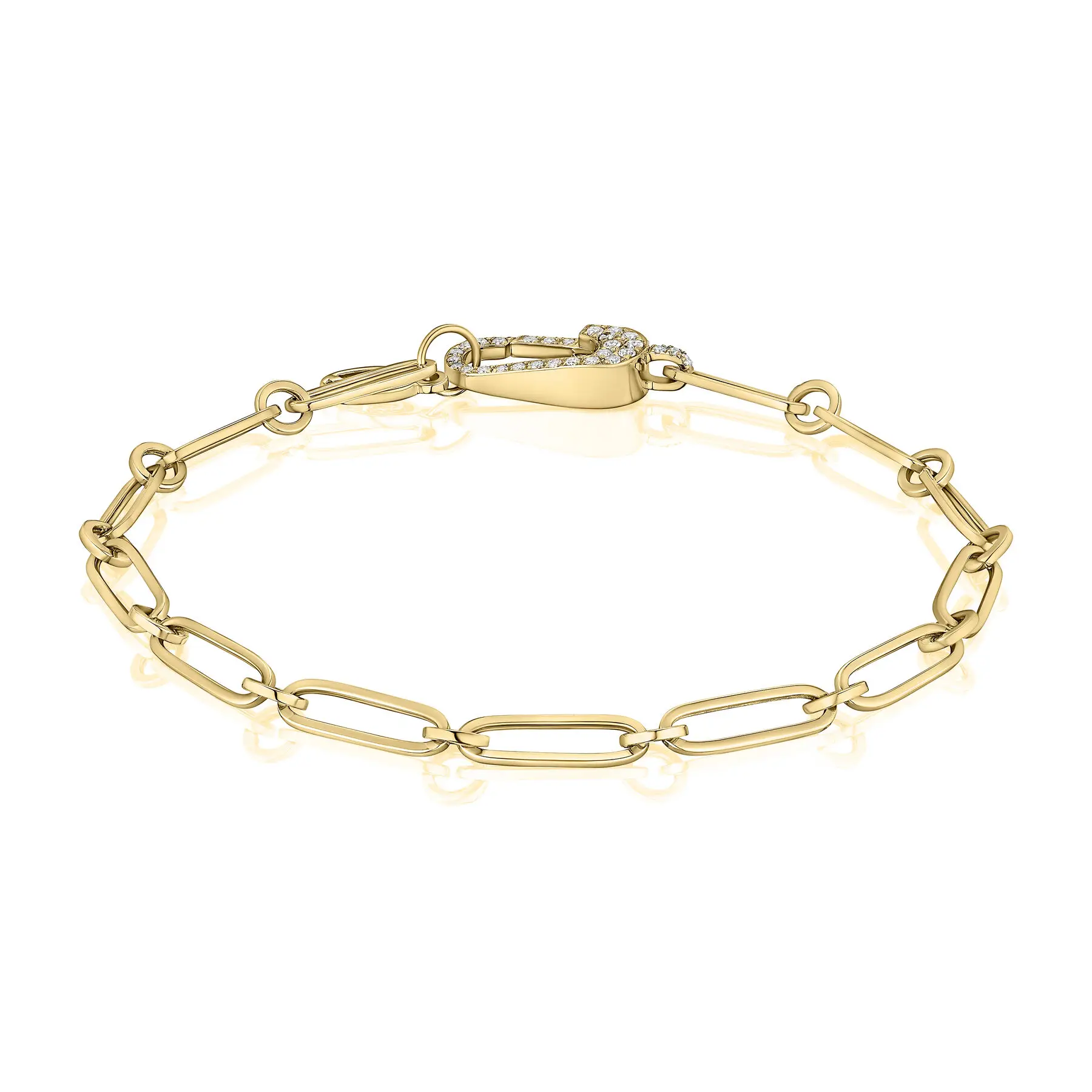 Paper Clip Bracelet With Plain and Pavé Diamonds Links Total Diamond Weight 0.19 ctw