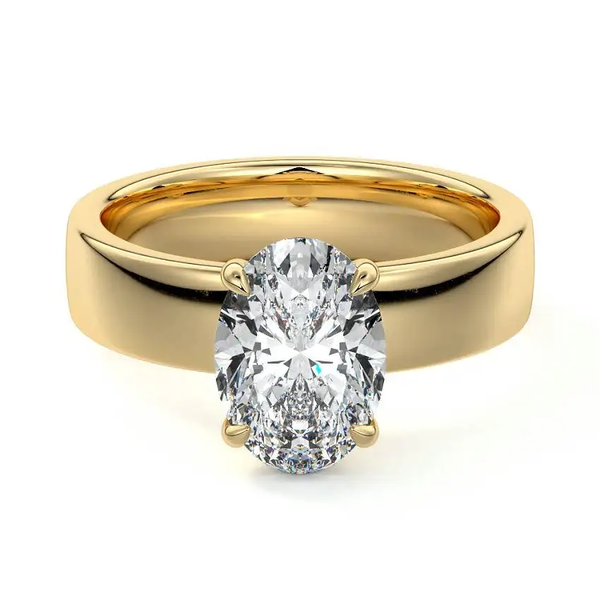 This eye-catching 4mm chunky solitaire engagement ring features a bold band that perfectly complements the center stone. The substantial width of the band adds a modern flair while providing a comfortable fit. The simplicity of the solitaire design highlights the diamond’s brilliance, making it a stunning choice for those who appreciate a contemporary yet timeless look.